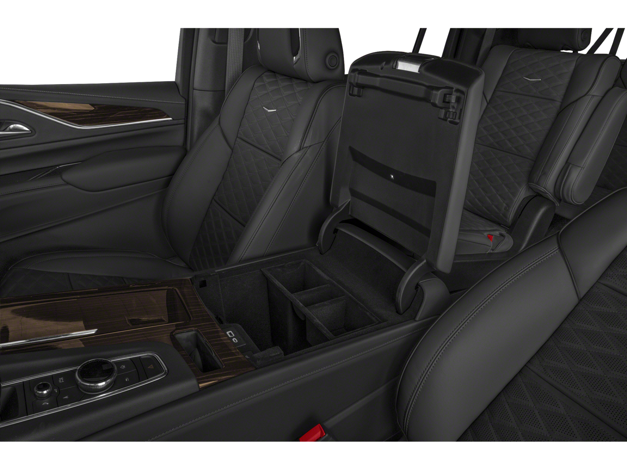 - Console, floor with covered storage, large and small storage bins, dual cup holders, electronic climate controls and second row heated seat controls. Also includes auxiliary power outlet, USB A/C ports and 110-volt outlet