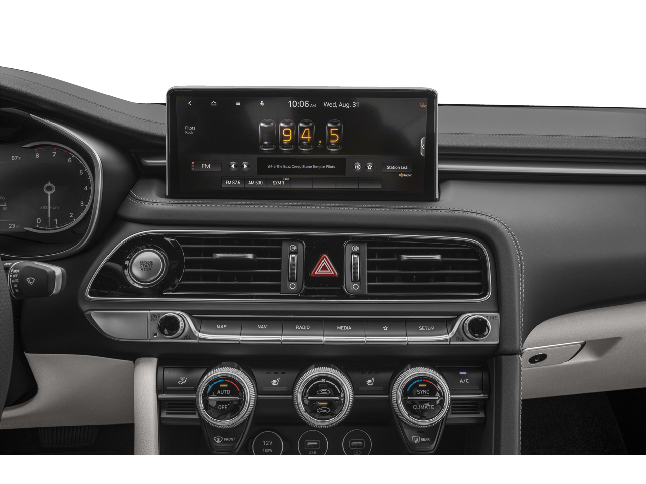 - Radio: AM/FM/SiriusXM/HD Audio System -inc: 6 speakers, 5th generation navigation system w/10.25" touchscreen, dynamic voice recognition, connected routing, over the air updates, Android Auto and Apple CarPlay, Genesis connected services, Bluetooth® hands-free phone and audio streaming system and 4 USB ports